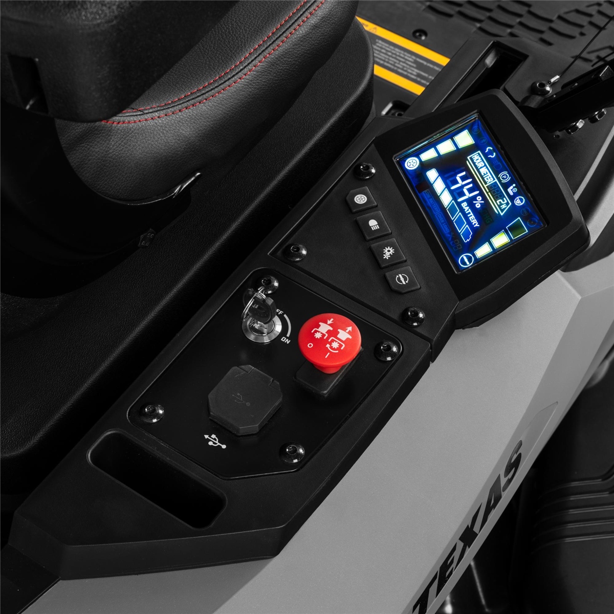 - Bedienfeld mit Display für Batteriestatus und Steuerung