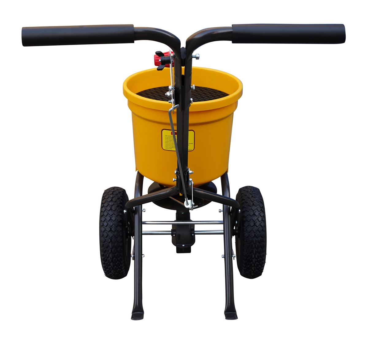 Der Behälter ist 25L. Der sanfte Griff und die Luftgummiräder sorgt für eine Maschine, die einfach und bequem zu bedienen ist. Der Streuwagen ist einfach zu benutzen und wird leicht transportiert.