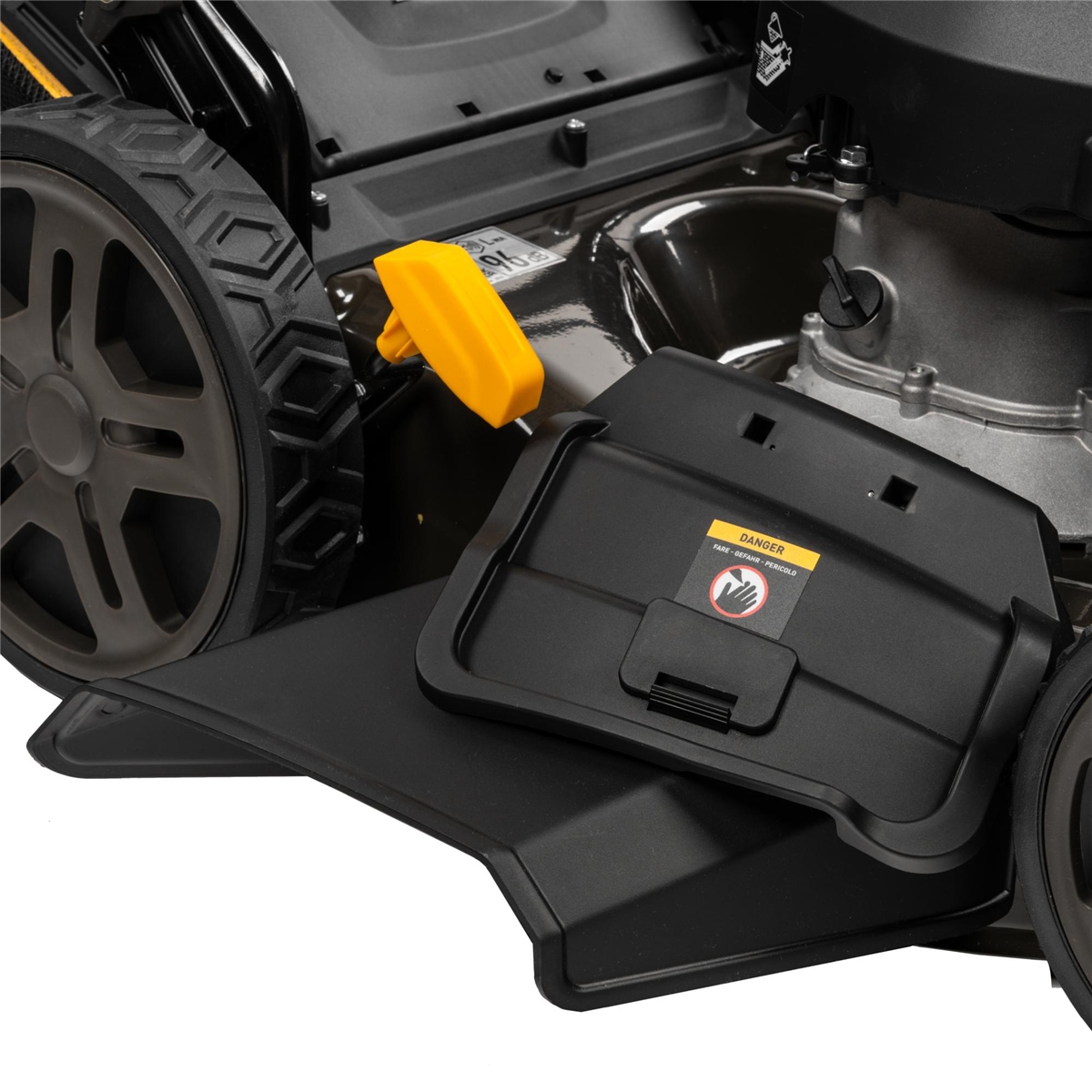 - Integrierte Waschdüse am Mähdeck für einfache Reinigung mit Gartenschlauch